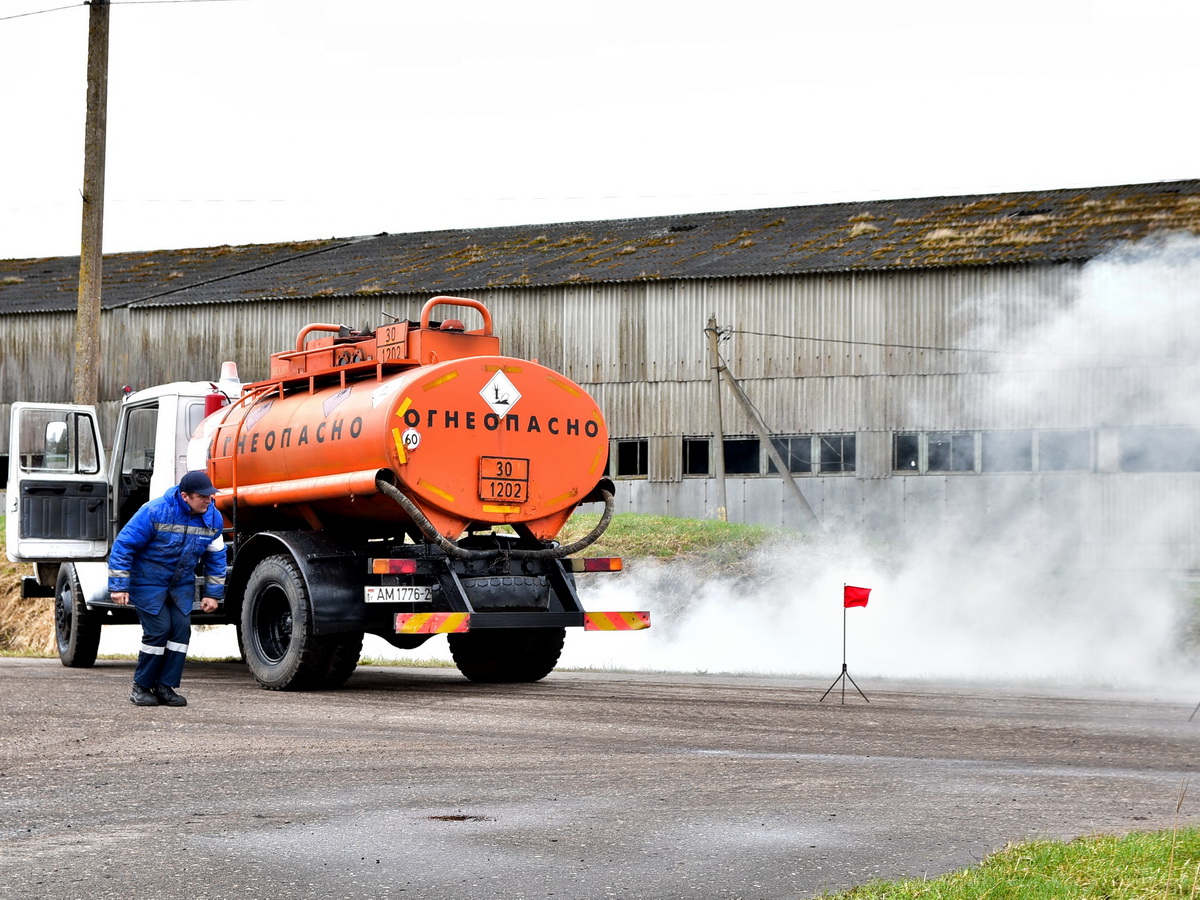 По легенде учений водитель топливозаправщика, двигаясь по территории, не справился с управлением и совершил наезд на опору действующей линии электропередачи. В результате произошёл обрыв провода, который упал на кабину автомобиля. Ситуация осложнилась возгоранием техники и разливом топлива из цистерны.