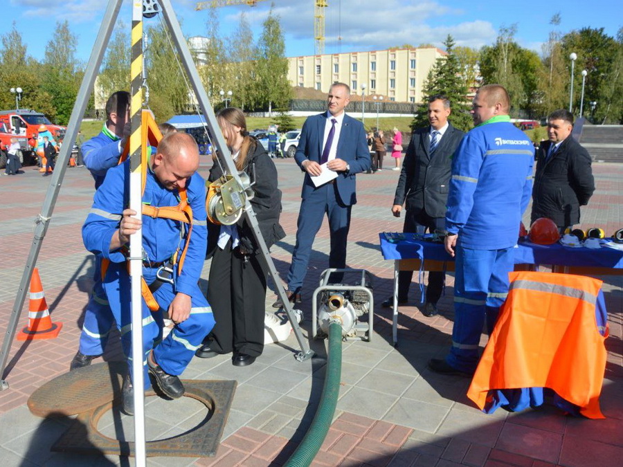Сотрудники РУП «Витебскэнерго» также приняли участие в работе тематических площадок безопасности, которые были организованы в Витебске и районных центрах области. Одну из таких площадок посетил генеральный директор предприятия Сергей Шидловский.
